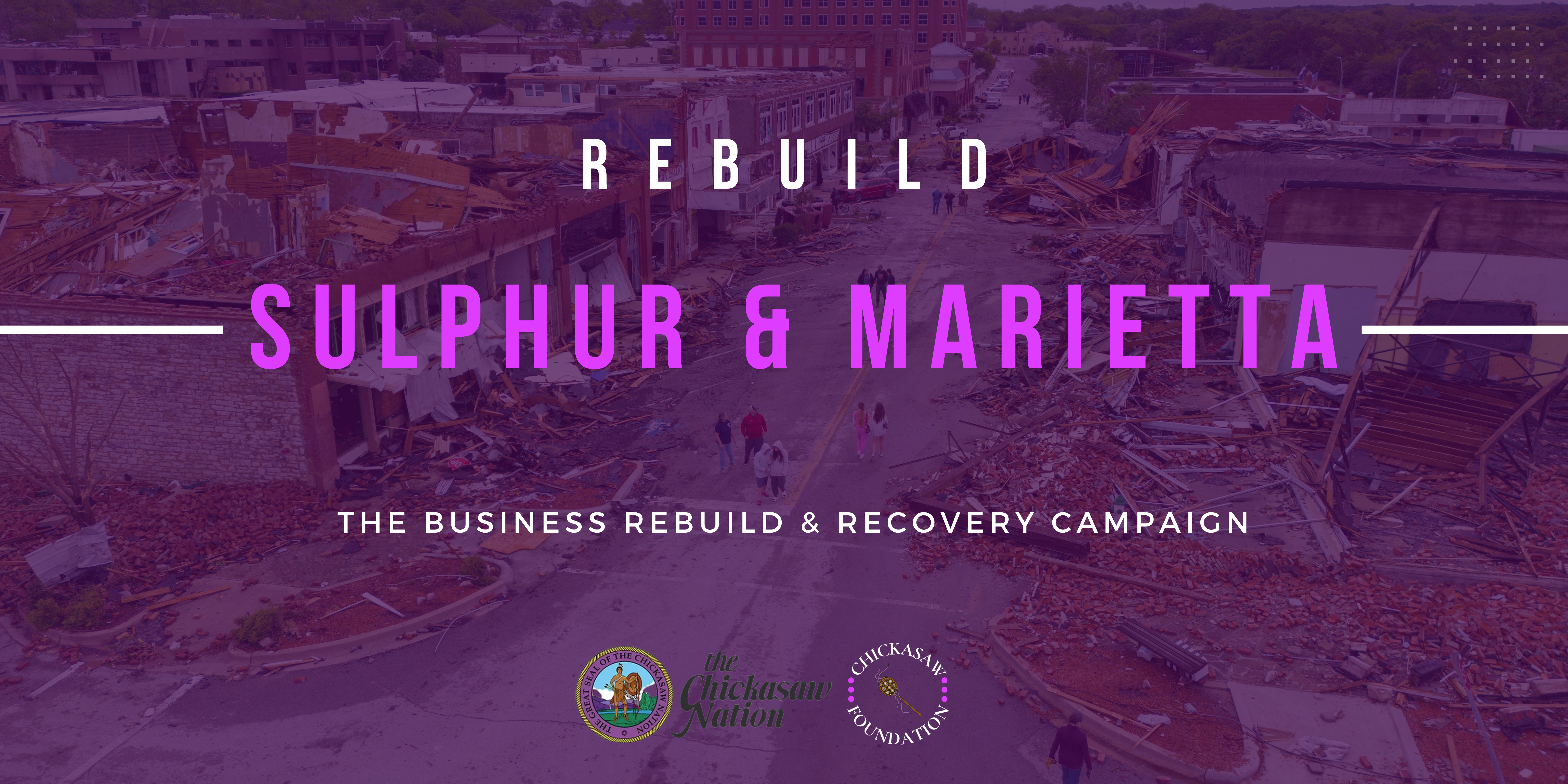Help the communities of Sulphur and Marietta rebuild and recover! Donations may be made online via credit card/ACH, by check or wire transfer. Checks can be mailed to P.O. Box 1726, Ada, Oklahoma 74821. If you are donating greater than $1,000, please contact us at 580-421-9030. Read more about the campaign: Business Rebuild & Recovery Campaign